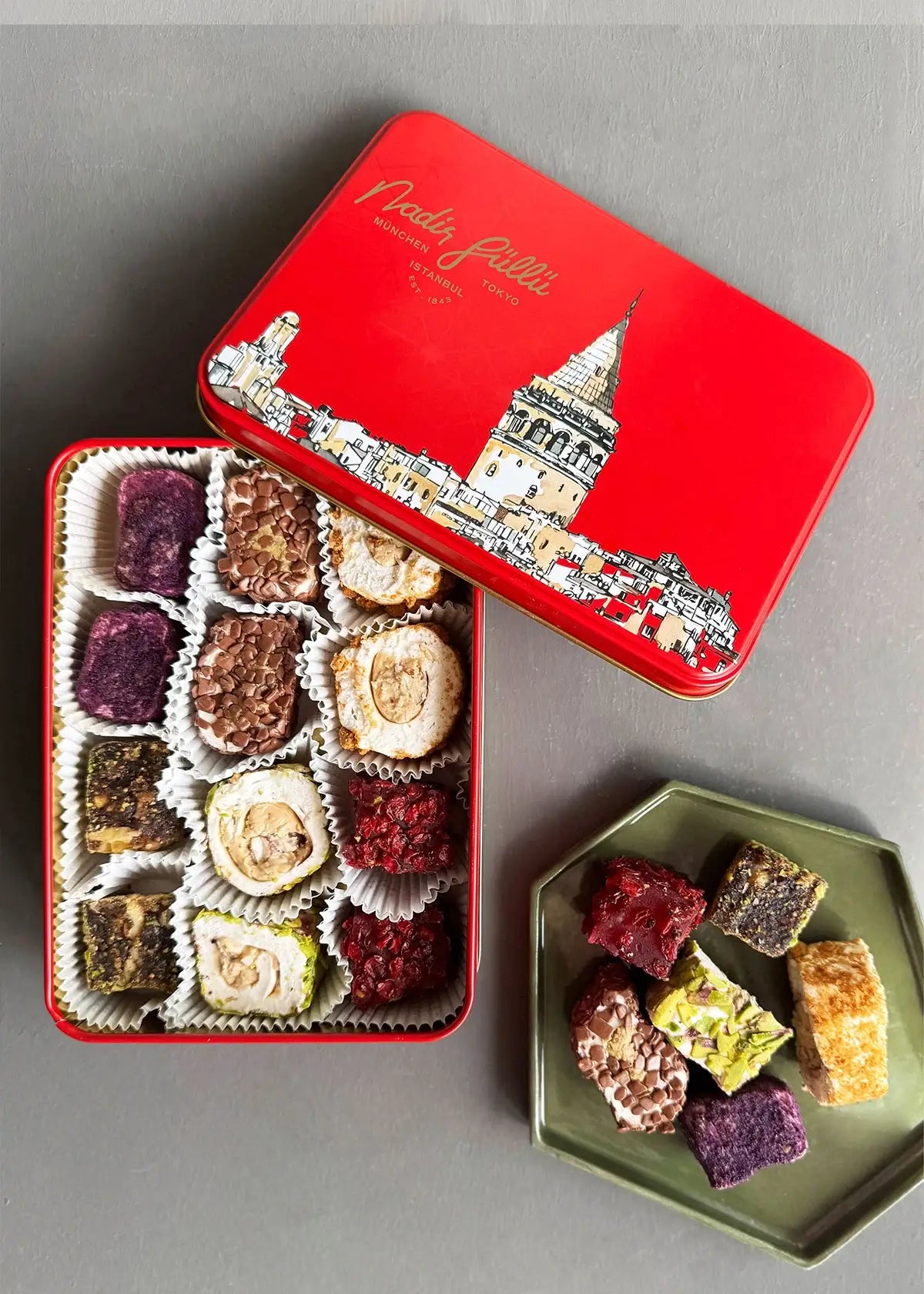12 Stück gemischtes Sultan-Lokum in der Metall-Geschenkbox
